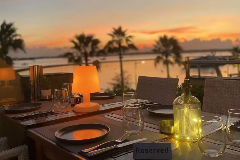 At lunchtime, choose the air-conditioned room or the outdoor shade, at the end of the day the setting sun unveils a sparkling picture to pick cocktail in hand, and in the evening the atmosphere is subdued in a cosy setting to invite the most romantic to savor their complicity.