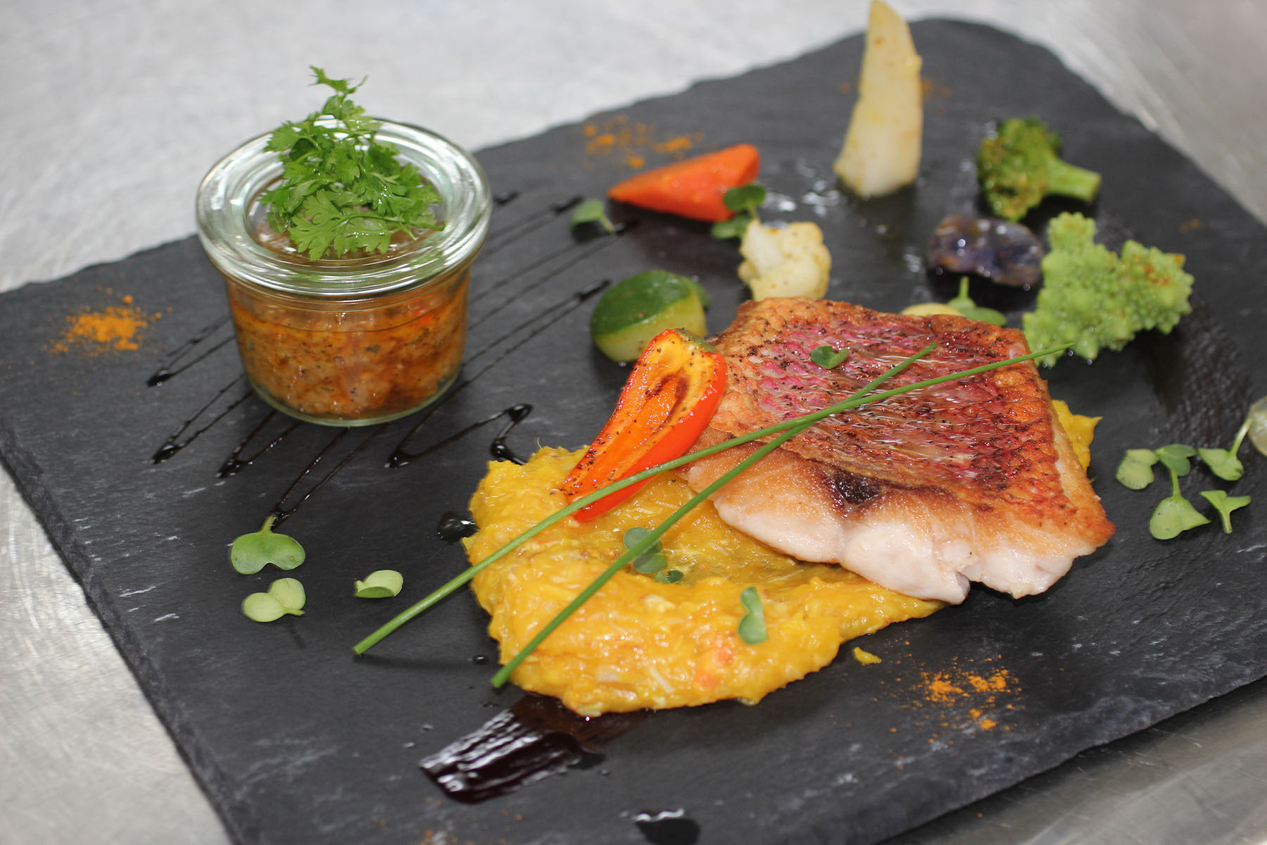 L’accueil est parfaitement orchestré par Thomas qui saura vous guider avec son équipe pour choisir parmi les plats raffinés avec de superbes alliances de saveurs. Les desserts sont un enchantement de douceurs et de surprises dont l’incontournable Millefeuille de framboises fraîches, crème de mascarpone et chocolat blanc ivoire.