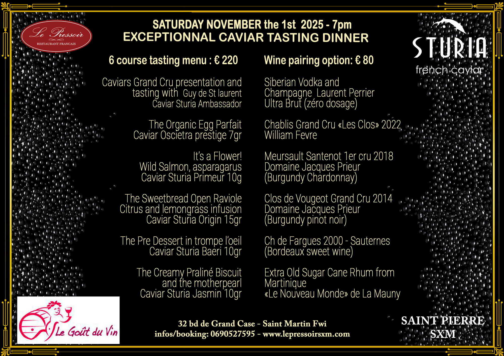 An amazing 6 course menu all around Caviar paired with Grand Crus.
