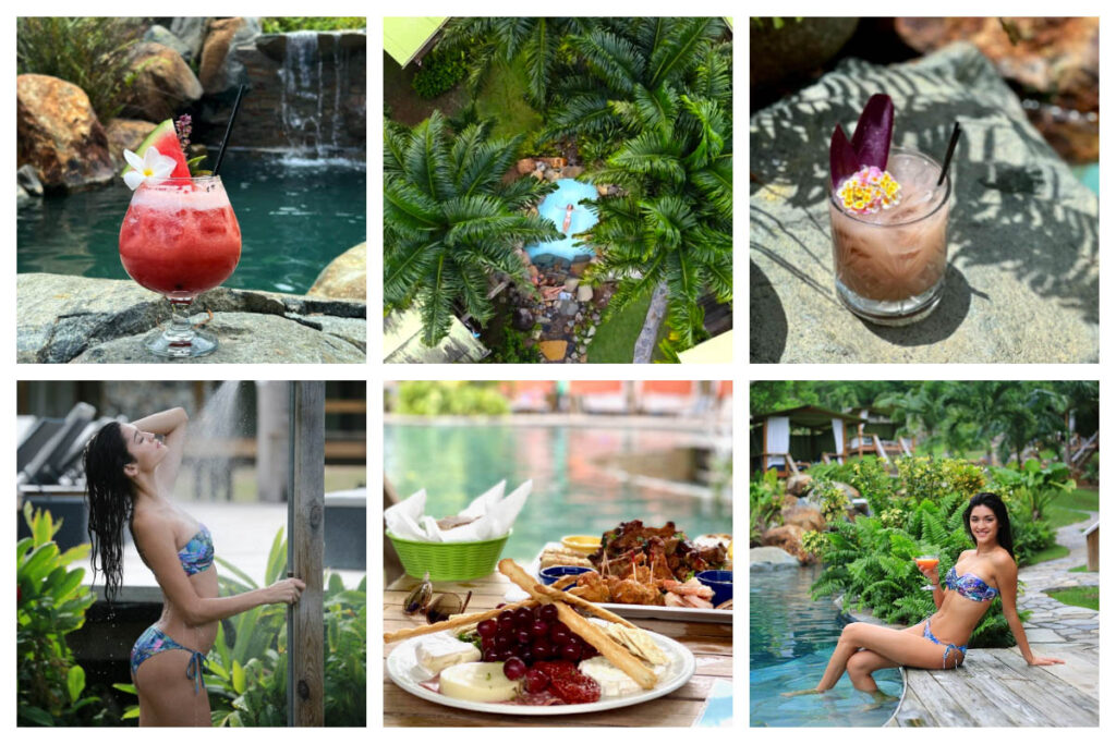 Cozy, corner couches for intimate tête à tête réunions, to a full-on sit-down dining area are all separated by planters displaying the very vegetation that flourishes in our tropical forest.