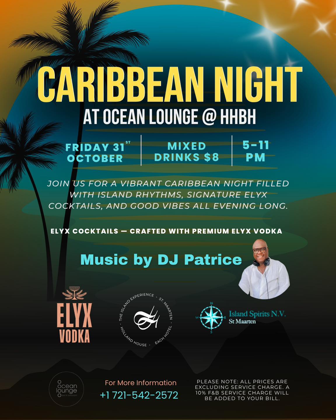 The Ocean lounge restaurant and bar is located in the Holland House Beach Hotel on the Island of St. Maarten.